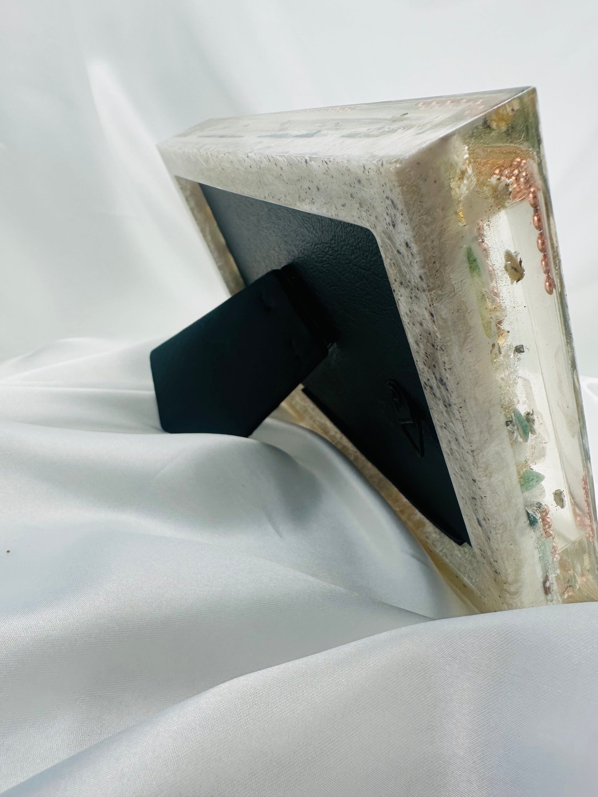Made with epoxy resin, plexiglass panel, magnetic strips, picture frame backing
